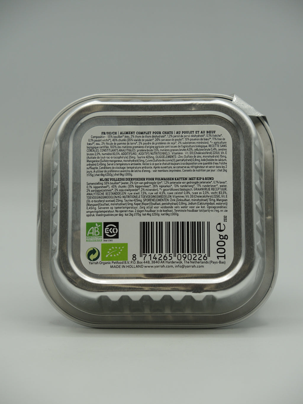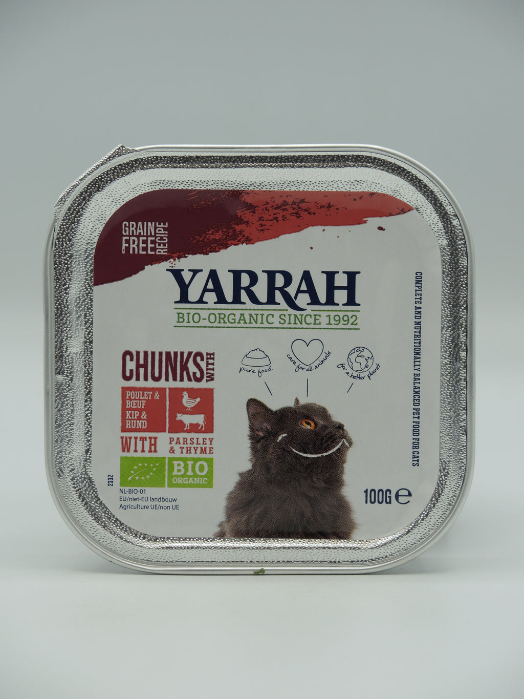 Bouchées biologiques au poulet et au bœuf pour chat, 100g, Yarrah