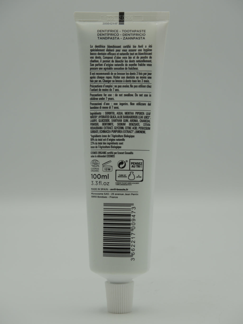 Des dents plus blanches ? Tout le monde en rêve ! Le dentifrice blanchissant certifié bio Avril vous aide à atteindre cet objectif grâce à la poudre de charbon contenu dans sa formule.