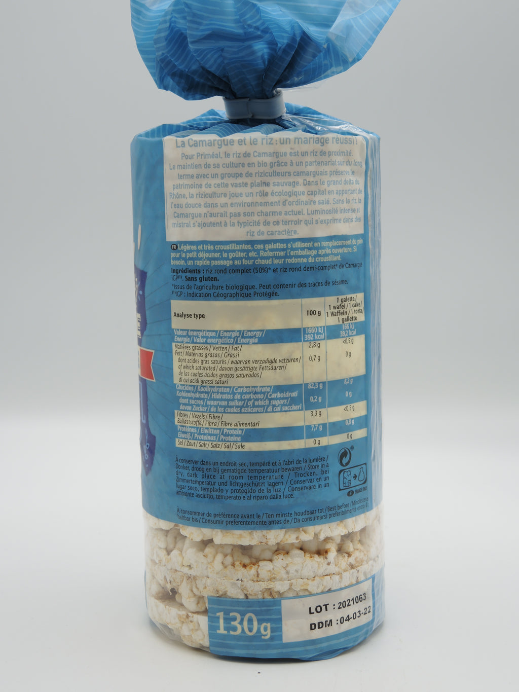Galettes de riz de Camargue sans sel,100% France, 130g, Priméal