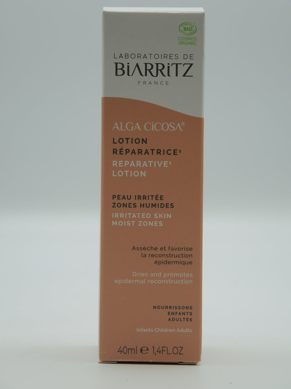 La lotion réparatrice assèche, répare et assainit les épidermes irrités en milieu humide (zones sujettes à macération…). Sa formule hypoallergénique renferme de l’Alga-Sendatu®, actif réparateur breveté d’origine naturelle (algue rouge de la Côte Basque) qui favorise la reconstruction des couches superficielles de la peau.