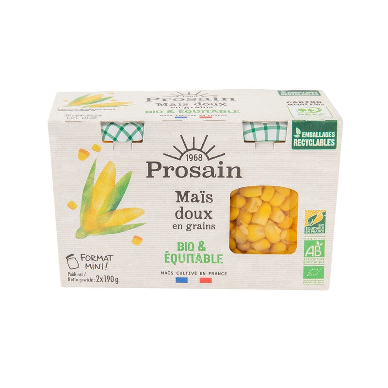 Maïs doux en grains, équitable et cultivé en France Maïs récolté à maturité par notre partenaire Bio Centre Loire, coopérative située en Centre-Val de Loire, pour la qualité et le goût de ses grains tendres et naturellement doux. Labellisé Bio Equitable en France : un label pour une production bio, équitable et française. Une association entre des groupements de paysans en France et des acteurs engagés pour construire lagriculture Bio de demain. Sans sucres ajoutés, contient des sucres naturellement présents. Un lot de 2, zéro plastique et 100% recyclable (carton PEFC, bocal verre et capsule métal). Un nouveau format « mini », pratique et zéro gâchis, des portions adaptées à des besoins individuels ou de petites quantités. Une fois égoutté, ce maïs peut se déguster en salade ou être cuisiné.