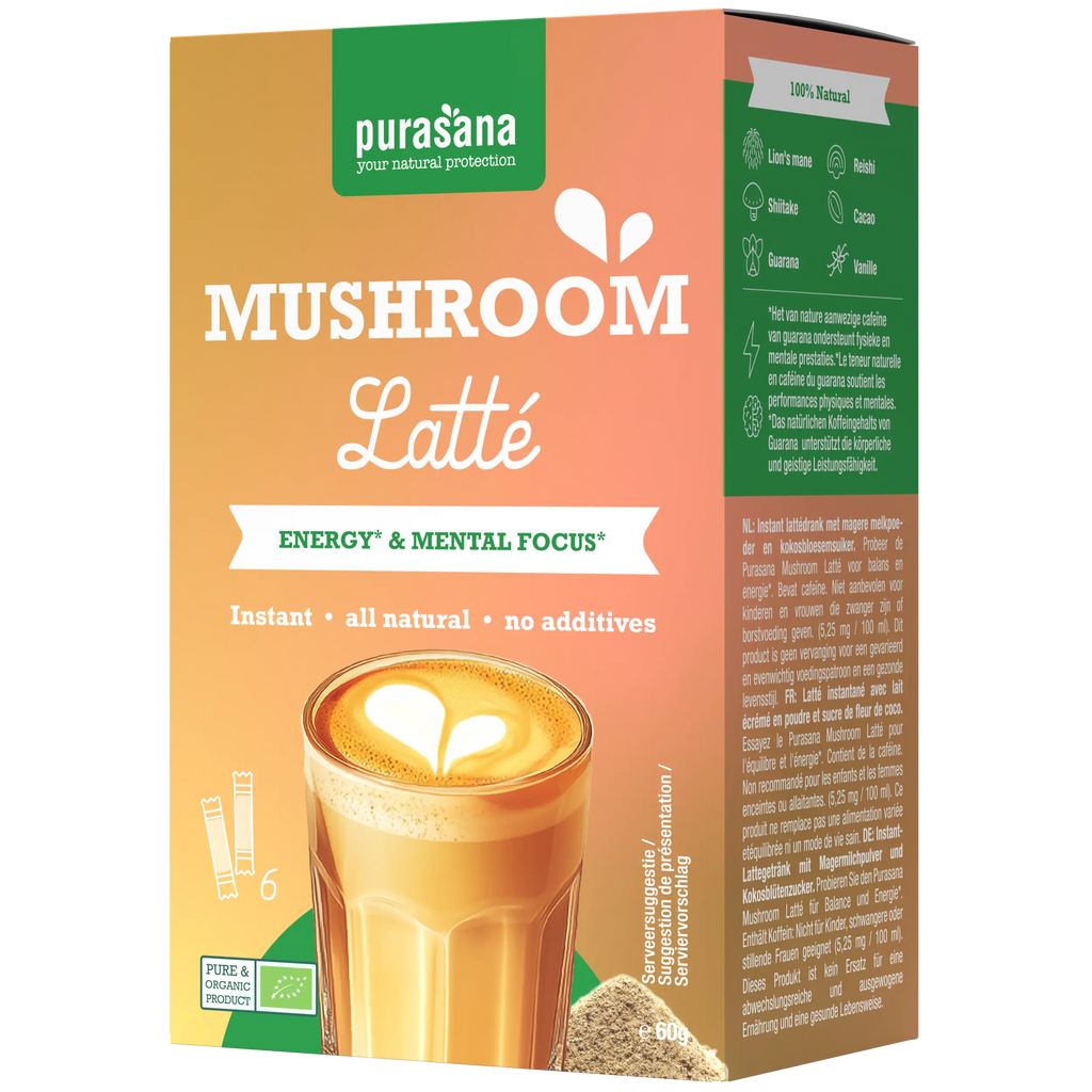 Le Mushroom Latte combine reishi, champignons, cacao et guarana. Une boisson aux champignons bio, parfaite pour une concentration détendue, où que vous soyez !