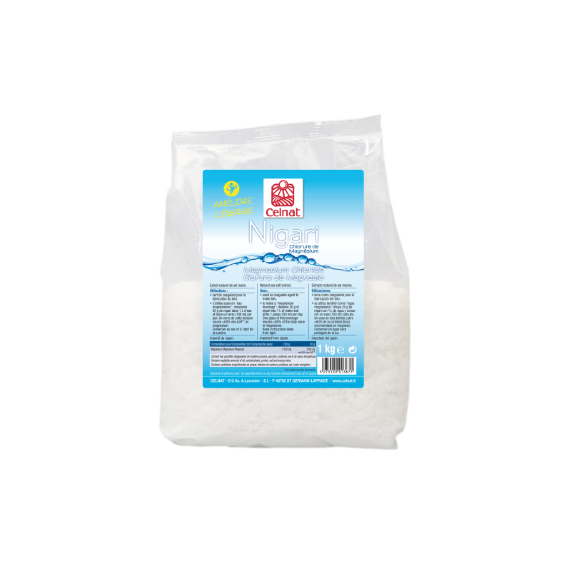 Le nigari est un cristal naturel de chlorure de magnésium d'origine marine, non purifié. La matière première, les cristaux de chlorure de magnésium, proviennent de la province de Qinghai, en Chine, dans un environnement préservé à 3700-4500 m d'altitude.