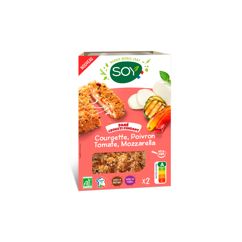 Une recette cuisinée et ensoleillée !De la mozzarella ultra fondante et des légumes du soleil (courgette, poivron et tomate) soigneusement cuisinés, le tout enrobé d'une panure croustillante aux 3 graines (lin brun, sésame noir et millet). L'alliance gourmande et inédite du fondant et du croustillant ! Déjà prêt ! 8 min à la poêle Ou 12 min au four à 200°C