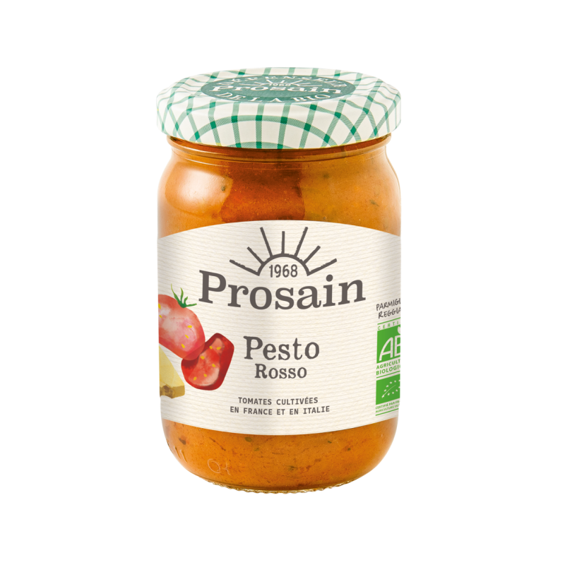 Tomate* 29% (cube*, double concentré*), huile d'olive* vierge extra extraite à froid, tomates mi séchées* 16%, huile de tournesol* désodorisée, basilic* 5%, noix de cajou* 3%, fromage* Parmigiano Reggiano AOP (lactose) 3%, graines de tournesol* 2%, vinaigre de vin blanc*, sel de mer, ail*. *Ingrédients issus de l'agriculture biologique. En gras : allergènes. Souligné : issu du commerce